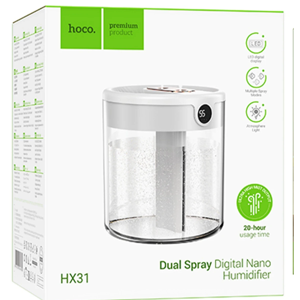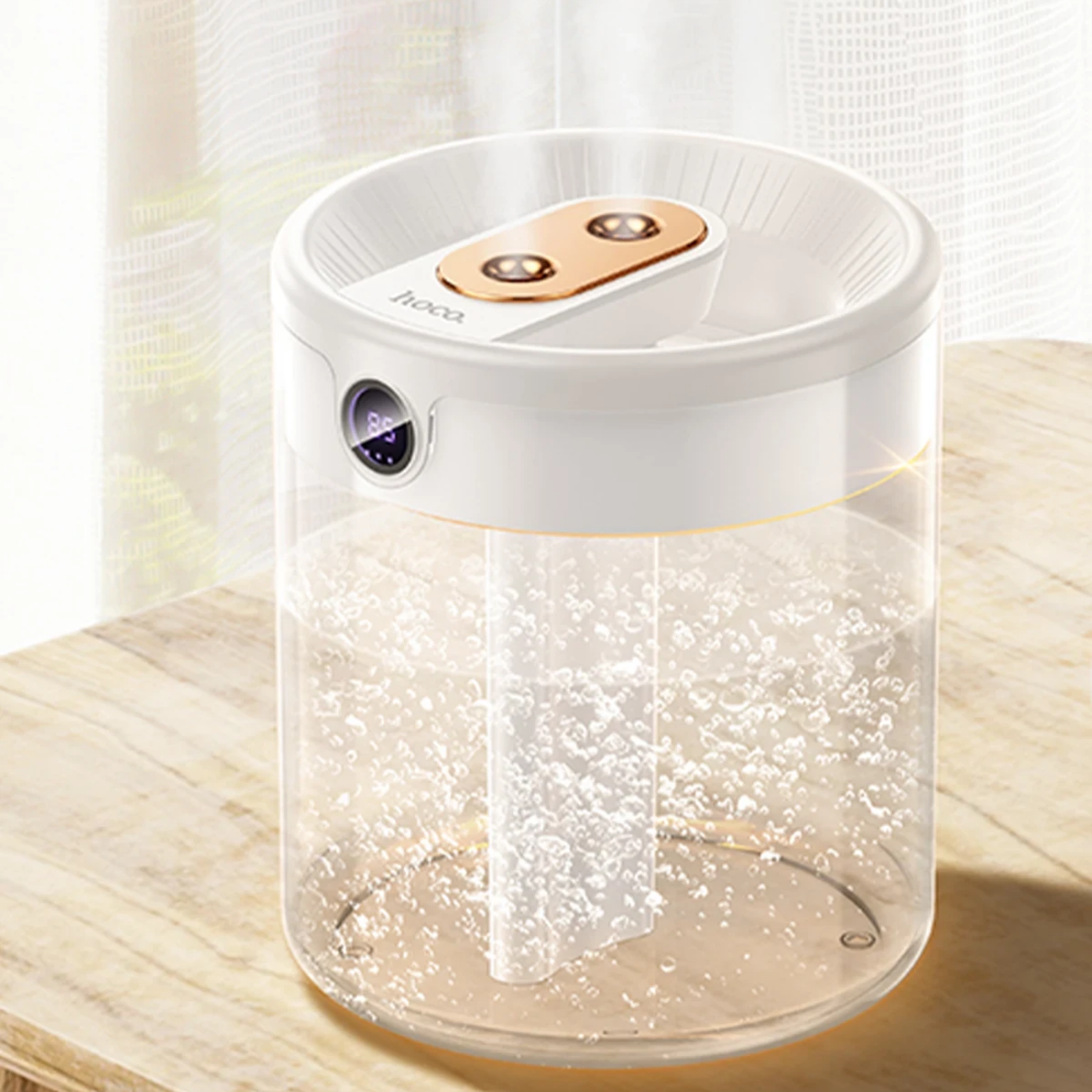 Hoco Dual Dijital Göstergeli Zaman Ayarlı Masaüstü Hava Nemlendirici - Beyaz