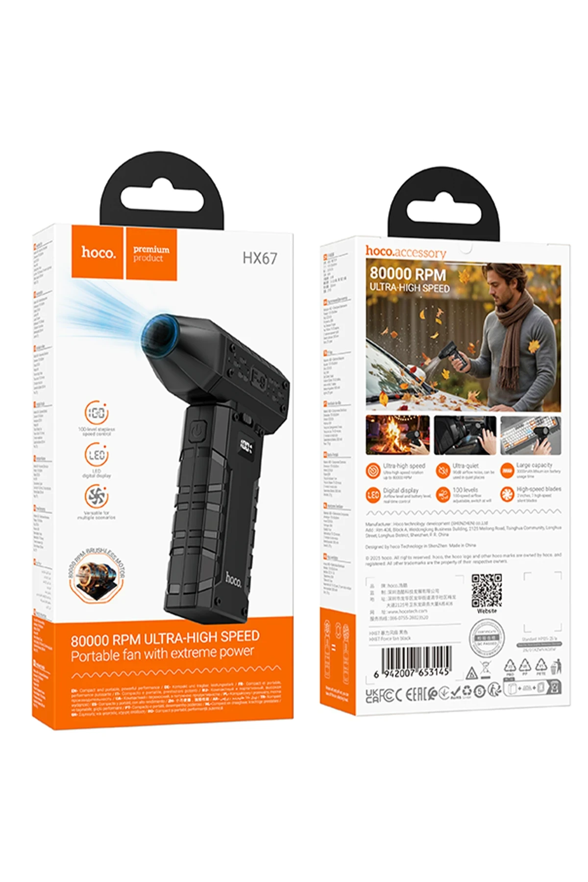 Hoco Force Dijital Göstergeli 80.000 RPM Hava Kompresörü - Siyah