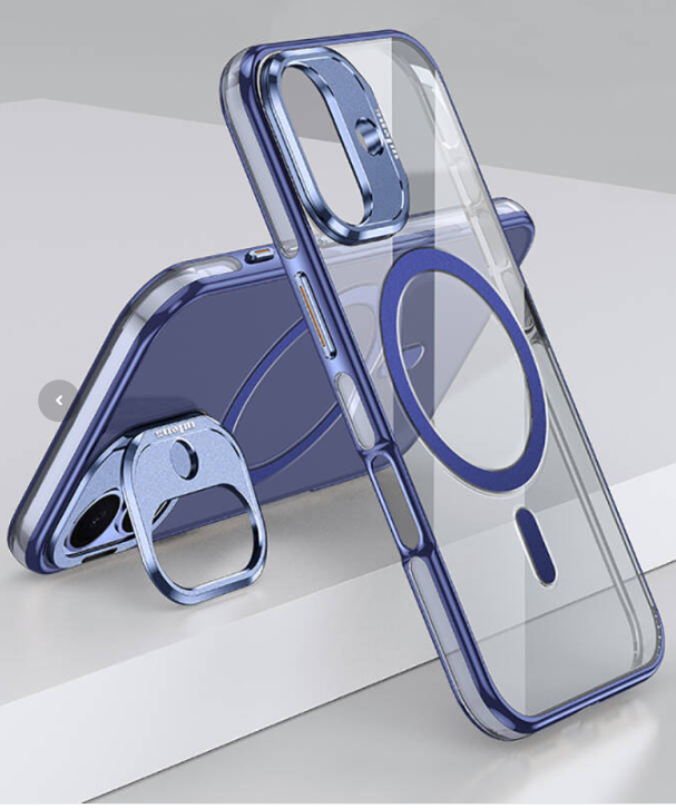 iPhone 16 Plus Metal Standlı Magsafe Kılıf Mavi